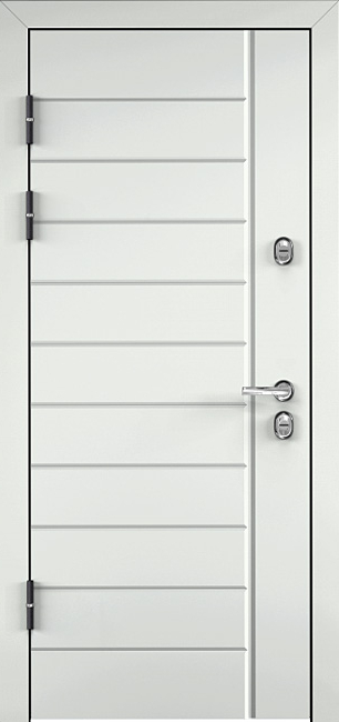 Эта белоснежная входная дверь с линиями №30 станет стильным и надежным элементом для любого интерьера. Благодаря отделке из панелей МДФ с ПВХ-покрытием, дверь выглядит элегантно и обладает высокой устойчивостью к внешним повреждениям. Внешний вид дверного полотна дополнен утонченными линиями, что придает ей современный, лаконичный вид. Прочный каркас из профильных труб 50х25 мм и лист металла толщиной 2 мм обеспечивают отличную защиту и долгий срок службы. Два контура резинового уплотнителя эффективно защищают от шума и холода, создавая комфорт в помещении. Замки Просам и Мосрентген с тремя ригелями гарантируют надежную безопасность. Дополнительно можно заказать зеркала, стеклопакеты и кованые элементы, что делает дверь универсальной для разных дизайнерских решений. Квартирная дверь входная белоснежного цвета с линиями №30 от производителя: быстрое изготовление и монтаж в Коломне, индивидуальные размеры, широкий выбор материалов и фурнитуры, официальная гарантия до 10 лет.