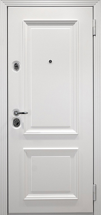 Белая входная дверь стандартная №36 идеально подходит для тех, кто ищет простоту и надежность. Внешняя и внутренняя отделка из МДФ накладки придает дверям элегантный и современный вид, сочетая прочность и долговечность. Материал отделки отличается устойчивостью к механическим повреждениям и воздействию внешней среды, сохраняя при этом привлекательный внешний вид. Каркас из профильной трубы с толщиной металла 2 мм и ребра жесткости гарантируют необходимую прочность и безопасность, а блокираторы обеспечивают дополнительную защиту. Входная дверь оснащена двухконтурным резиновым уплотнителем, что помогает сохранять тепло и защищать от внешних шумов. Замки модели Просам и Мосрентген с тремя ригелями обеспечат надежную защиту вашего дома или офиса. Дверь также может быть дополнена зеркалом, стеклопакетами и коваными элементами, а также оснащена видеодомофоном, что делает модель №36 универсальным решением для любых нужд. Белая входная дверь стандартная №36 от производителя: быстрое изготовление и монтаж в Коломне, индивидуальные размеры, широкий выбор материалов и фурнитуры, официальная гарантия до 10 лет.