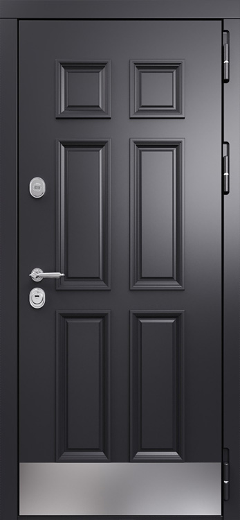 Входная дверь с МДФ №566 создана для тех, кто ценит прочность металла и уютный внешний вид в одном решении. Она одинаково хорошо вписывается в частный дом, квартиру или офис, подчеркивая солидность пространства и обеспечивая надежную защиту. Каркас и полотно собраны из профильных труб, усиленных ребрами жесткости, а стальной лист толщиной 2 мм гарантирует устойчивость к взлому и длительный срок службы. С обеих сторон дверь облицована МДФ панелями с ПВХ-покрытием, что делает поверхность более устойчивой к истиранию и мелким повреждениям, сохраняя привлекательность даже при интенсивной эксплуатации. Панели легко очищаются и не выгорают на солнце, благодаря чему дверь подходит и для уличной установки. Два контура уплотнения надежно защищают от сквозняков и посторонних запахов, а при необходимости можно дополнительно усилить конструкцию тепло- и шумоизоляцией. Модель №566 сочетает в себе сдержанный дизайн и функциональность, делая ее практичным выбором для самых разных помещений. Входная дверь с МДФ №566 от производителя: быстрое изготовление и монтаж в Коломне, индивидуальные размеры, широкий выбор материалов и фурнитуры, официальная гарантия до 10 лет.