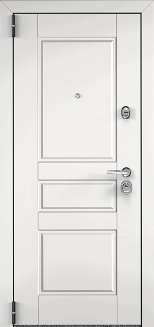 Белая металлическая дверь входная для дома №33 выделяется своим свежим и современным обликом. Универсальный белый цвет делает её уместной как в частном коттедже, так и в квартире или офисе, визуально добавляя простора и подчеркивая аккуратность фасада или интерьера. Конструкция двери основана на стальном листе толщиной 2 мм и усилена профильными трубами, что гарантирует надежность и устойчивость к нагрузкам. Важная особенность модели — наличие терморазрыва в полотне и коробке: благодаря этому дверь не промерзает в зимний период, исключается конденсат и сохраняется комфорт внутри помещения. Внешняя и внутренняя отделка выполнена из МДФ с ПВХ-покрытием, которое защищает поверхность от влаги и механических повреждений, сохраняя первозданный вид надолго. Два контура уплотнителя обеспечивают герметичность и дополнительную защиту от сквозняков. Эта дверь удачно сочетает эстетику и практичность, создавая надежный вход в любое жилище. Белая металлическая дверь входная для дома №33 от производителя: быстрое изготовление и монтаж в Коломне, индивидуальные размеры, широкий выбор материалов и фурнитуры, официальная гарантия до 10 лет.