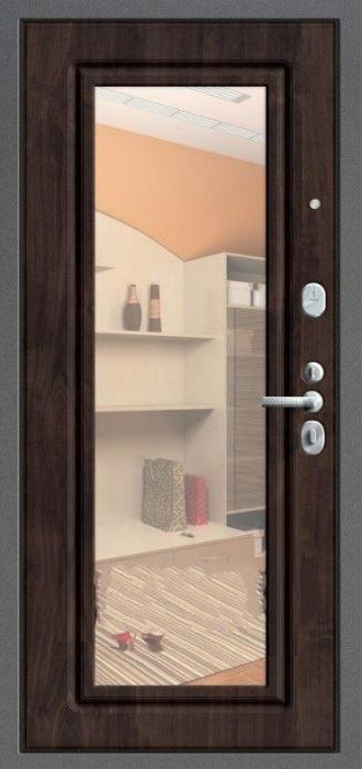 Тёплая входная дверь для частного дома №48 сочетает в себе прочность металлоконструкции и удобство повседневной эксплуатации. Каркас и полотно выполнены из профильной трубы с металлическим листом толщиной 2 мм, что обеспечивает высокий запас надёжности. Двойной контур уплотнителей защищает от сквозняков, а наличие терморазрыва в коробке и полотне помогает удерживать тепло внутри помещения даже в морозы. Внешняя и внутренняя отделка плитами МДФ делает дверь универсальной: материал устойчив к механическим повреждениям, не выгорает и сохраняет аккуратный вид долгие годы. Зеркало на полотне добавляет практичности, экономя место в прихожей и визуально расширяя пространство. Такая модель одинаково хорошо подходит для частного дома, квартиры или офиса, позволяя совместить строгую эстетику с надежной защитой. Теплая входная дверь для частного дома №48 от производителя: быстрое изготовление и монтаж в Коломне, индивидуальные размеры, широкий выбор материалов и фурнитуры, официальная гарантия до 10 лет.