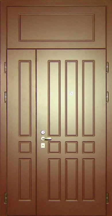 Полуторная входная дверь с верхней фрамугой №2 — это оптимальное решение для тех, кто ищет функциональность и эстетичность в одном продукте. Она отличается стильной отделкой из МДФ, которая устойчива к механическим повреждениям и сохраняет свой внешний вид на долгие годы. Конструкция двери включает прочный каркас из профильной трубы 50х25 мм и металл толщиной 2 мм, что обеспечивает высокую надежность. Наличие верхней фрамуги придает двери визуальную легкость и позволяет пропускать больше света, создавая уют в прихожей. Замки от надежных производителей, таких как Просам и Мосрентген, с тремя ригелями гарантируют высокий уровень безопасности. Для дополнительной кастомизации можно добавить стеклопакет, зеркало или кованые элементы, а также установить видеодомофон для контроля доступа. Полуторная входная дверь с верхней фрамугой №2 от производителя: быстрое изготовление и монтаж в Коломне, индивидуальные размеры, широкий выбор материалов и фурнитуры, официальная гарантия до 10 лет.