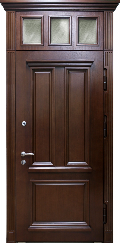 Дверь с сувальдным замком и фрамугой №34 идеально сочетает в себе стиль и надежность. Панель из натурального дерева, использованная как для внешней, так и для внутренней отделки, придает двери благородный и элегантный вид, делая её отличным выбором для помещений с классическим или современным интерьером. Каркас двери выполнен из профильной трубы 50х25 мм и усилен ребрами жесткости, что гарантирует прочность конструкции. Замки от производителей "Просам" и "Мосрентген" с тремя ригелями обеспечивают высокий уровень безопасности. Дверь оснащена уплотнителями с двумя контурами, что гарантирует отличную герметичность, а возможность замены замков и добавления кованых элементов делает её адаптируемой под любые требования. Кроме того, дверь можно дополнить зеркалом, стеклопакетом или видеодомофоном для еще большего комфорта. Входная дверь с сувальдным замком и фрамугой №34 от производителя: быстрое изготовление и монтаж в Коломне, индивидуальные размеры, широкий выбор материалов и фурнитуры, официальная гарантия до 10 лет.