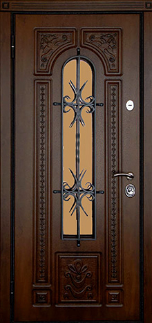 Металлическая дверь со стеклом и кованой решеткой №13 — это решение для тех, кто хочет совместить надежность и декоративную выразительность. Прочная конструкция из профильной трубы и стального листа толщиной 2 мм гарантирует устойчивость к нагрузкам, а ковка со стеклянными вставками делает вход более светлым и при этом надежно защищенным. Плита МДФ, используемая в отделке с обеих сторон, отличается долговечностью, стойкостью к царапинам и перепадам температуры, сохраняя аккуратный внешний вид на долгие годы. Два контура уплотнения и резиновая прокладка защищают от сквозняков и влаги, повышая комфорт в доме. Возможность выбора размеров и вариантов отделки позволяет создать дверь, полностью соответствующую архитектуре коттеджа или загородного дома. Металлическая дверь со стеклом и кованой решеткой №13 сочетает функциональность, эстетичность и индивидуальный характер, подчеркивая престиж жилища. Металлическая дверь со стеклом и кованой решеткой №13 от производителя: быстрое изготовление и монтаж в Коломне, индивидуальные размеры, широкий выбор материалов и фурнитуры, официальная гарантия до 10 лет.