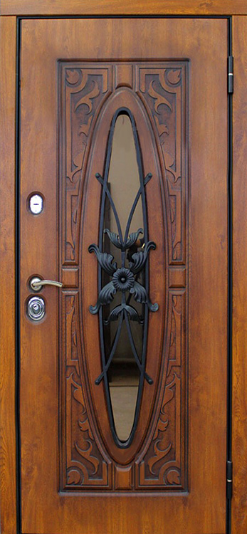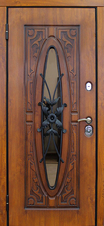 В частном доме дверь должна быть не просто барьером, а настоящей визитной карточкой, и именно эту задачу решает входная дверь со стеклом и ковкой №23. Натуральное дерево в отделке придает ей благородный и теплый вид, а декоративная ковка превращает конструкцию в выразительный элемент архитектуры. Внутри скрыт стальной каркас с листом металла 1,5 мм и противосъёмными блокираторами, что обеспечивает прочность и устойчивость к взлому. Особого внимания заслуживает наличие терморазрыва как в коробке, так и в полотне: он защищает от промерзания, исключает появление конденсата и помогает сохранять тепло зимой и прохладу летом. Тройной контур магнитного уплотнения усиливает герметичность и снижает уровень уличного шума, а пенопласт повышенной плотности в качестве наполнителя добавляет теплоизоляции. Входная дверь в частный дом со стеклом и ковкой №23 гармонично сочетает надежность и эстетику, позволяя владельцу адаптировать её под стиль фасада с помощью дополнительных декоративных решений. Входная дверь в частный дом со стеклом и ковкой №23 от производителя: быстрое изготовление и монтаж в Коломне, индивидуальные размеры, широкий выбор материалов и фурнитуры, официальная гарантия до 10 лет.