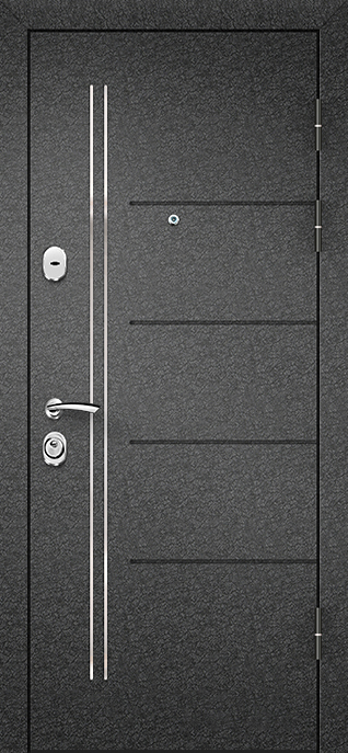Порошковая входная дверь №65 объединяет прочность металла и практичную отделку, делая её универсальным выбором для квартиры, офиса или подъезда. Каркас и полотно собраны из профильной трубы, усиленной ребрами жесткости, а стальной лист толщиной 2 мм придает конструкции дополнительную устойчивость к нагрузкам. Снаружи нанесено молотковое напыление — покрытие, стойкое к царапинам и атмосферным воздействиям, благодаря чему дверь долго сохраняет аккуратный внешний вид. Внутренняя сторона оформлена ламинированными панелями, создающими ощущение тепла и комфорта. Два резиновых контура уплотнения помогают отсечь сквозняки и пыль, при необходимости можно добавить шумо- и теплоизоляцию. Модель №65 сочетает надежность и лаконичность, а её внешний вид гармонично впишется как в жилое пространство, так и в деловую среду. Порошковая входная дверь №65 от производителя: быстрое изготовление и монтаж в Коломне, индивидуальные размеры, широкий выбор материалов и фурнитуры, официальная гарантия до 10 лет.