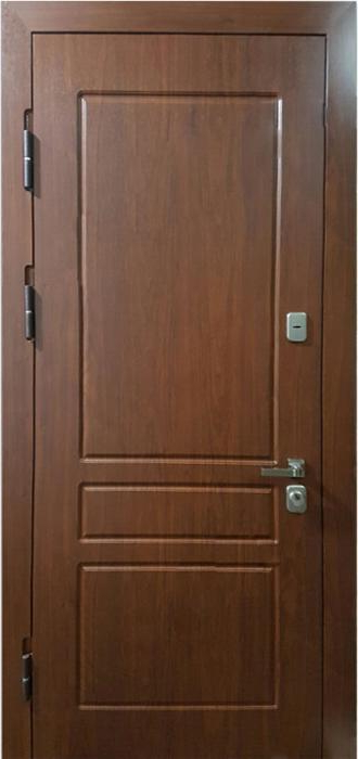 Дверь входная уличная с терморазрывом №41 – это надежная и стильная модель, идеально подходящая для частных домов и коттеджей. Конструкция двери с терморазрывом в коробке и полотне эффективно защищает от холодного воздуха и влаги, обеспечивая стабильный микроклимат внутри помещения. Внешняя и внутренняя отделка из панелей МДФ с ПВХ покрытием не только привлекает внимание своим современным дизайном, но и обеспечивает отличную стойкость к механическим повреждениям, а также долговечность. Металлическое полотно толщиной 1,5 мм с ребрами жесткости из профильных труб гарантирует высокую прочность, а также надежную защиту от взлома. Шумо- и теплоизоляция из пенопласта повышенной плотности создают дополнительный комфорт. Дверь оснащена высококачественными замками Kale Kilit с тремя ригелями, что обеспечивает высокий уровень безопасности. Дверь входная уличная с терморазрывом №41 от производителя: быстрое изготовление и монтаж в Коломне, индивидуальные размеры, широкий выбор материалов и фурнитуры, официальная гарантия до 10 лет.