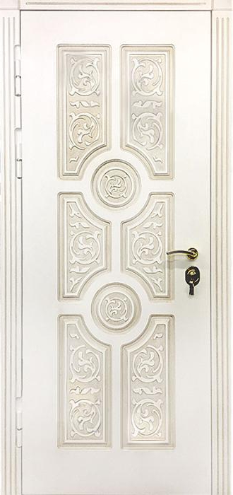 Дверь уличная с терморазрывом №49 — это надежное решение для частных домов и коттеджей, которое обеспечит комфорт и защиту от внешних факторов. С терморазрывом в коробке и полотне, эта дверь исключает проникновение холода, сохраняя тепло в доме и предотвращая появление конденсата. Внешняя и внутренняя отделка выполнена с использованием накладки МДФ, что придает двери привлекательный вид и долговечность, стойкость к механическим повреждениям и атмосферным воздействиям. Ковка, как элемент декора, добавляет изысканности и подчеркивает индивидуальность. Металлическая конструкция с толщиной полотна 1,5 мм и каркасом из профильных труб гарантирует прочность и устойчивость. Уплотнение с тремя контурами магнитного герметика и высокая шумо- и теплоизоляция на основе пенопласта делают дверь идеальной для использования в уличных условиях. Возможность замены замков и добавления стеклопакетов или кованых элементов позволяет индивидуализировать дверное решение под любые потребности. Дверь уличная с терморазрывом №49 от производителя: быстрое изготовление и монтаж в Коломне, индивидуальные размеры, широкий выбор материалов и фурнитуры, официальная гарантия до 10 лет.