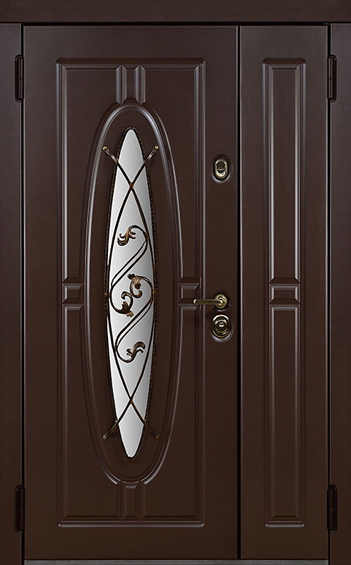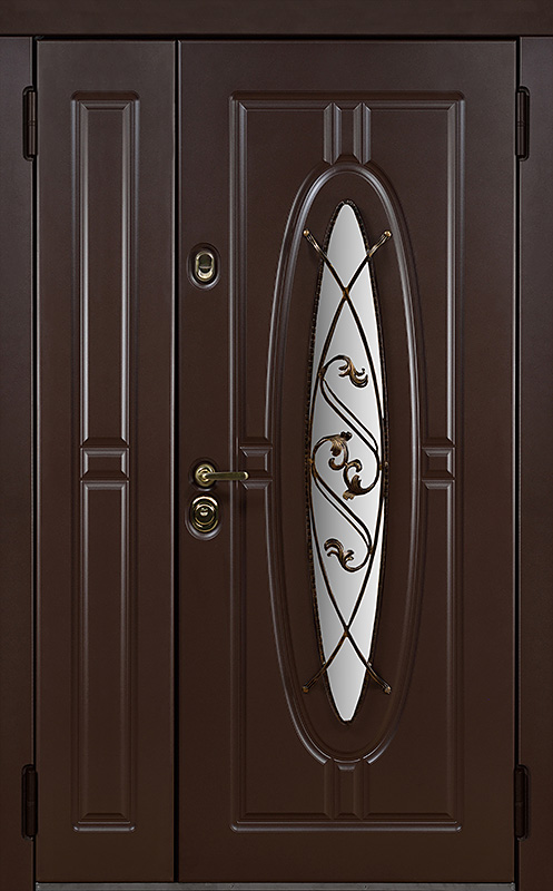 Двойная уличная дверь с овальным стеклом и художественной ковкой №14 — это уникальное сочетание функциональности и эстетики. Панели МДФ с ПВХ-покрытием, используемые как для внешней, так и для внутренней отделки, обладают высокой стойкостью к внешним воздействиям, сохраняя свой внешний вид на долгие годы. Внешний декор в виде художественной ковки придаёт двери особый шарм, подчеркивая её стиль и индивидуальность. Двойная уличная дверь с овальным стеклом и художественной ковкой №14 от производителя: быстрое изготовление и монтаж в Коломне, индивидуальные размеры, широкий выбор материалов и фурнитуры, официальная гарантия до 10 лет.