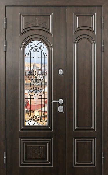 Двупольная стальная дверь со стеклопакетом и кованым узором №24 станет отличным выбором для тех, кто ценит не только безопасность, но и стиль. Внешняя и внутренняя отделка выполнены из МДФ, что придает двери элегантный и современный вид, а также обеспечивает высокую устойчивость к механическим повреждениям и износу. Стеклопакет и кованые элементы добавляют изысканности и уникальности, при этом сохраняя прочность конструкции. Двупольная стальная дверь со стеклопакетом и кованым узором №24 от производителя: быстрое изготовление и монтаж в Коломне, индивидуальные размеры, широкий выбор материалов и фурнитуры, официальная гарантия до 10 лет.
