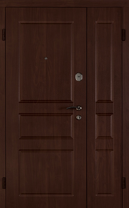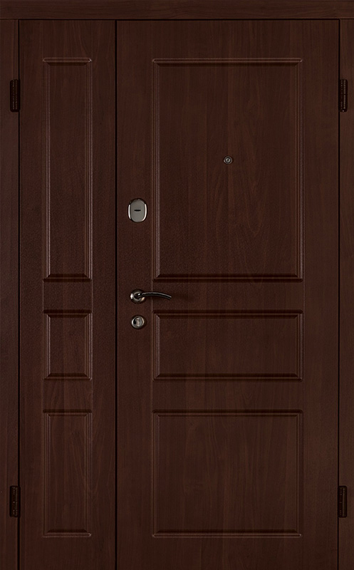 Коричневая входная полуторная дверь с филенчатой створкой №4 – это надежное и стильное решение для вашего дома или офиса. Внешняя и внутренняя отделка из МДФ с ПВХ обеспечивает долговечность и устойчивость к повреждениям, сохраняя при этом элегантный внешний вид. Прочные материалы конструкции, такие как профильная труба 50х25 мм и лист металла толщиной 2 мм, гарантируют стабильность и безопасность. Ребра жесткости из профильных труб 40х25 мм усиливают дверное полотно, а уплотнение с двумя контурами надежно защищает от внешних факторов. Несмотря на отсутствие терморазрыва, в двери реализованы терморазрывы в коробке и полотне, что помогает улучшить теплоизоляцию. Возможность выбора дополнительных опций, таких как шумоизоляция, делает эту дверь универсальной для различных условий эксплуатации. Коричневая входная полуторная дверь с филенчатой створкой №4 от производителя: быстрое изготовление и монтаж в Коломне, индивидуальные размеры, широкий выбор материалов и фурнитуры, официальная гарантия до 10 лет.