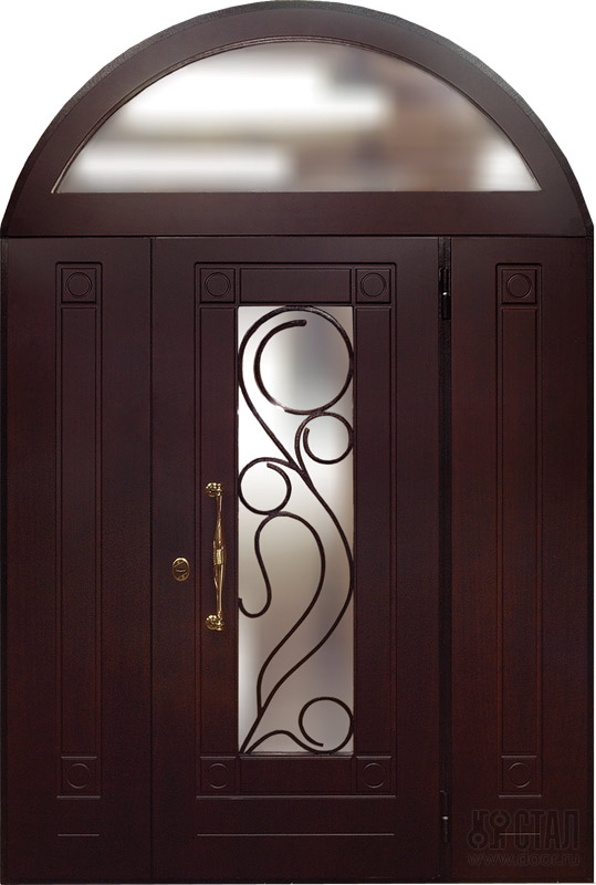 Эксклюзивная высокая входная дверь с железным отбойником №36