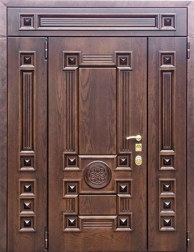 Входная металлическая дверь с порошковым покрытием стеклом и ковкой в частный дом №27