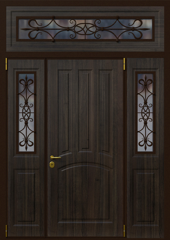 Большая выходная дверь со стеклом и ковкой №4