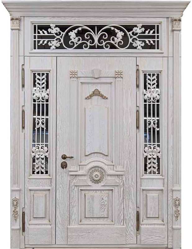 Утепленная дверь на усиленном коробе для загородного дома с колоннами №34