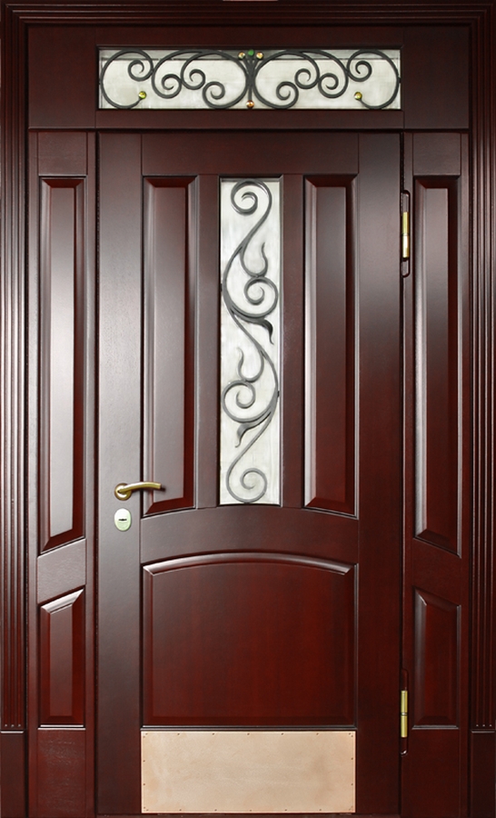 Красивая шпонированная дверь с надежной фурнитурой и ковкой "лоза" №33 идеально дополнит интерьер вашего частного дома или коттеджа. Внешняя и внутренняя отделка выполнены из натурального дерева, что придает двери элегантность и стиль. Профильная труба 50х25 мм используется для каркаса и полотна, а лист металла толщиной 2 мм и ребра жесткости из профильных труб 40х25 мм обеспечивают прочность и долговечность. Несмотря на отсутствие терморазрыва, дверь гарантирует надежную защиту и теплоизоляцию благодаря двум контурам уплотнения. Элементы ковки "лоза" придают двери особое очарование, сочетая практичность с эстетикой. Эта дверь — идеальный выбор для тех, кто ценит стиль, качество и безопасность. Красивая шпонированная дверь с надежной фурнитурой и ковкой "лоза" №33 от производителя: быстрое изготовление и монтаж в Коломне, индивидуальные размеры, широкий выбор материалов и фурнитуры, официальная гарантия до 10 лет.
