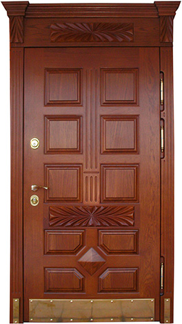 Эксклюзивная высокая входная дверь с железным отбойником №36 — это образец элегантности и функциональности, который идеально впишется в любой частный дом или коттедж. Изготовленная из массива дерева, она будет долго сохранять свой привлекательный внешний вид и устойчивость к внешним воздействиям. Прочная конструкция из профильных труб и листа металла толщиной 2 мм, усиленная ребрами жесткости, гарантирует надежность и долговечность. Терморазрыв в коробке и полотне помогает минимизировать теплопотери и защищает от перепадов температуры. Дверь оснащена высококачественными замками, что обеспечивает высокий уровень безопасности. Железный отбойник добавляет двери не только дополнительную защиту, но и стильный элемент дизайна. Эксклюзивная высокая входная дверь с железным отбойником №36 от производителя: быстрое изготовление и монтаж в Коломне, индивидуальные размеры, широкий выбор материалов и фурнитуры, официальная гарантия до 10 лет.